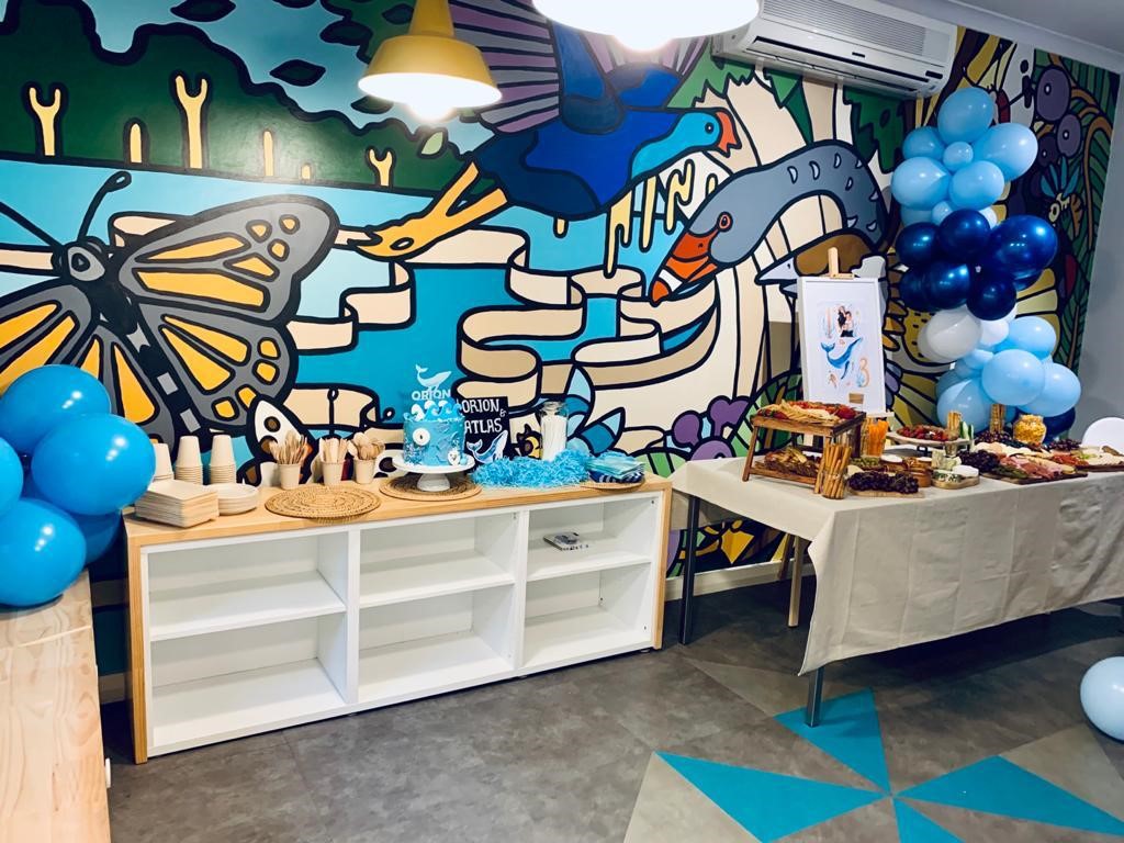 There are 3 small kid-sized tables (90cm x 60cm) and a large trestle table (2m x 75cm) available for use, along with approximately 20 kids’ chairs, 10 adults’ chairs and 4 highchairs. All the equipment is available to use with the hire, including the toys.